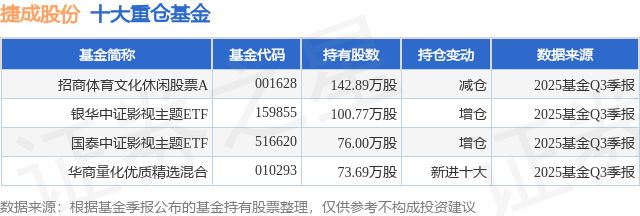 根据2025基金Q3季报公募基金重仓股数据,重仓该股的公募基金共4家,其中持有数量最多的公募基金为招商基金的招商体育文化休闲股票A。招商体育文化休闲股票A目前规模为2.16亿元,最新净值1.93(12月2日),较上一交易日下跌1.63%,近一年上涨20.02%。该公募基金现任基金经理为文仲阳。文仲阳在任的基金产品包括:招商丰盈积极配置混合A,管理时间为2024年3月12日至今,期间收益率为21.14%。